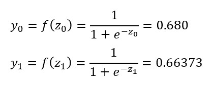 double F(double x){ return 1.0 / (1 + Math.Pow(Math.E, -x));}var y0 = F(z0);var y1 = F(z1);继续计算 $z_2$ 的值