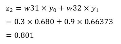 var z2 = w31 * y0 + w32 * y1;让 $z_2$ 经过激活函数,可得到$y_2$的值