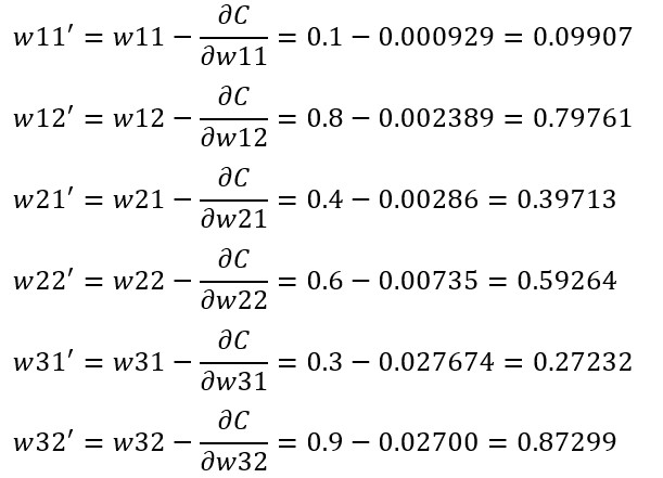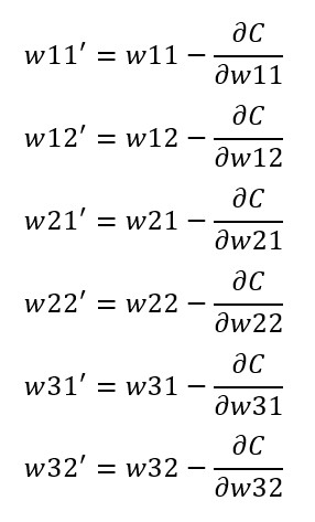 w31 = w31 - dc_dw31;w32 = w32 - dc_dw32;